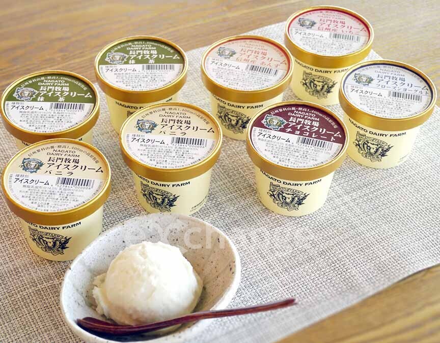 新鮮な生乳から作った長門牧場自慢のアイスクリーム。生乳の良さが良くわかる王道のバニラ、まるで生チョコのようなチョコレート、信州産にこだわったフレーバーの信州産あんず、信州産いちごなど、6種類のセットです