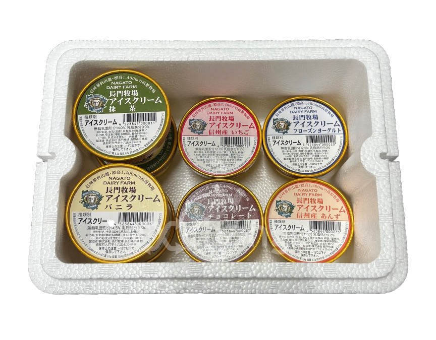 | セット内容 | アイスクリーム120ml×8個(バニラ×2、チョコレート×1、抹茶×2、信州産あんず×1、信州産いちご×1、フローズンヨーグルト×1) |