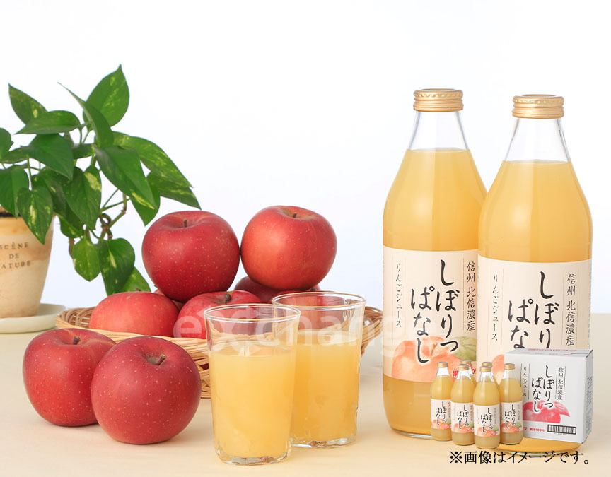 信州北信濃の味を直送。信州北信濃は年間を通じ寒暖差が大きい気候条件でりんごの栽培に適しています。そこで収穫された完熟りんごをしぼりたての香がそのまま味わえるように独自製法で搾ったストレートジュースです。