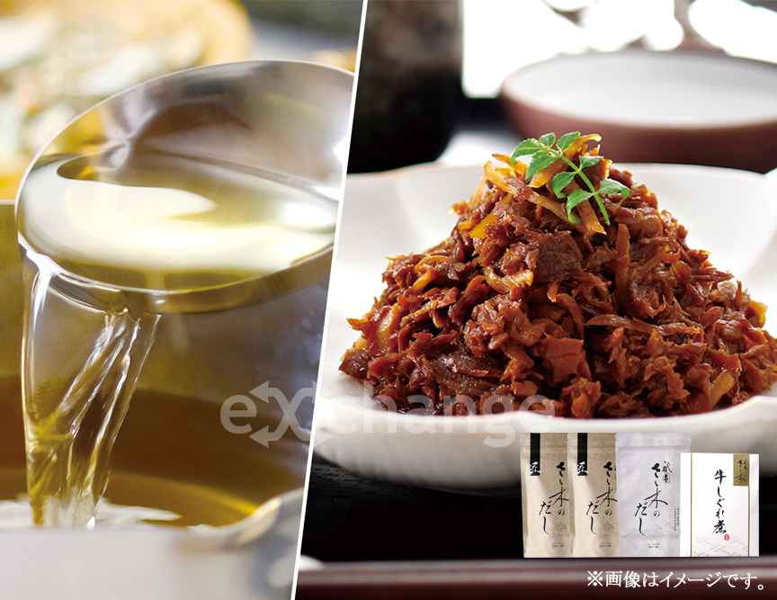 | セット内容 | だしパック8g×10入×1袋、だしパック匠(食塩不使用)11g×10入×2袋、牛しぐれ煮50g×1袋 |